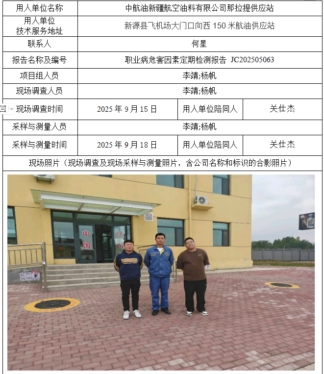 中航油新疆航空油料有限公司那拉提供应站职业病危害因素定期检测