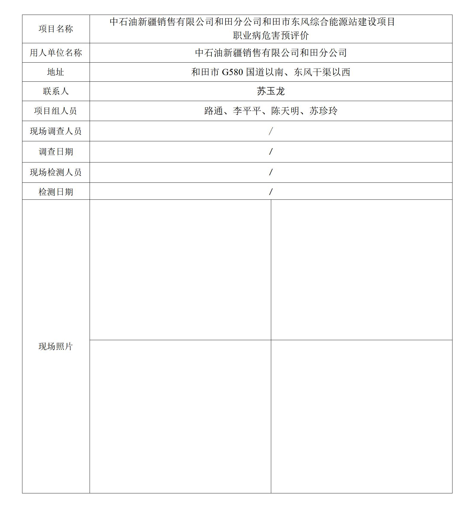 中石油新疆销售有限公司和田分公司东风综合能源站职业病危害预评价